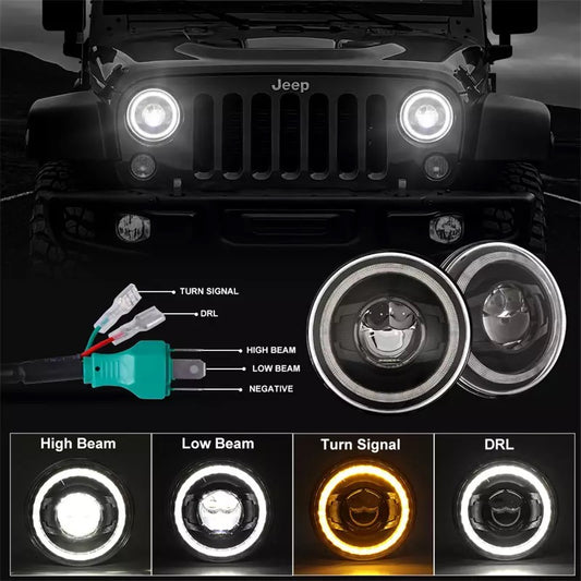 Kit led phares angel eyes jeep wrangler jk 2007/2018 4x4 120W 7 pouces, 2 pièces